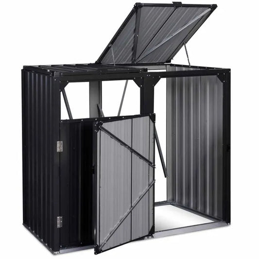Voir le produitCache poubelle en métal Anthracite/Effet Bois - 2 conteneurs
