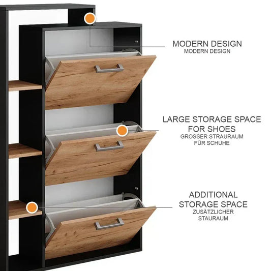 Voir le produitMeubles à chaussures noir & bois clair 3 compartiments
