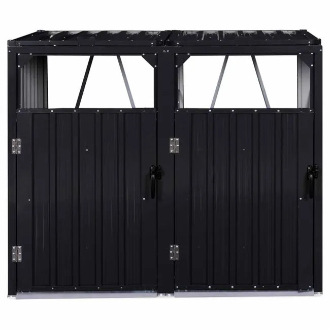 Conçu pour accueillir deux bacs, il facilite le tri des déchets grâce à ses couvercles relevables et portes avant pratiques, offrant ainsi un accès facile. Fabriqué en acier robuste, ce cache-poubelle assure une durabilité exceptionnelle et résiste aux intempéries, garantissant une utilisation prolongée sans compromettre son allure sophistiquée.