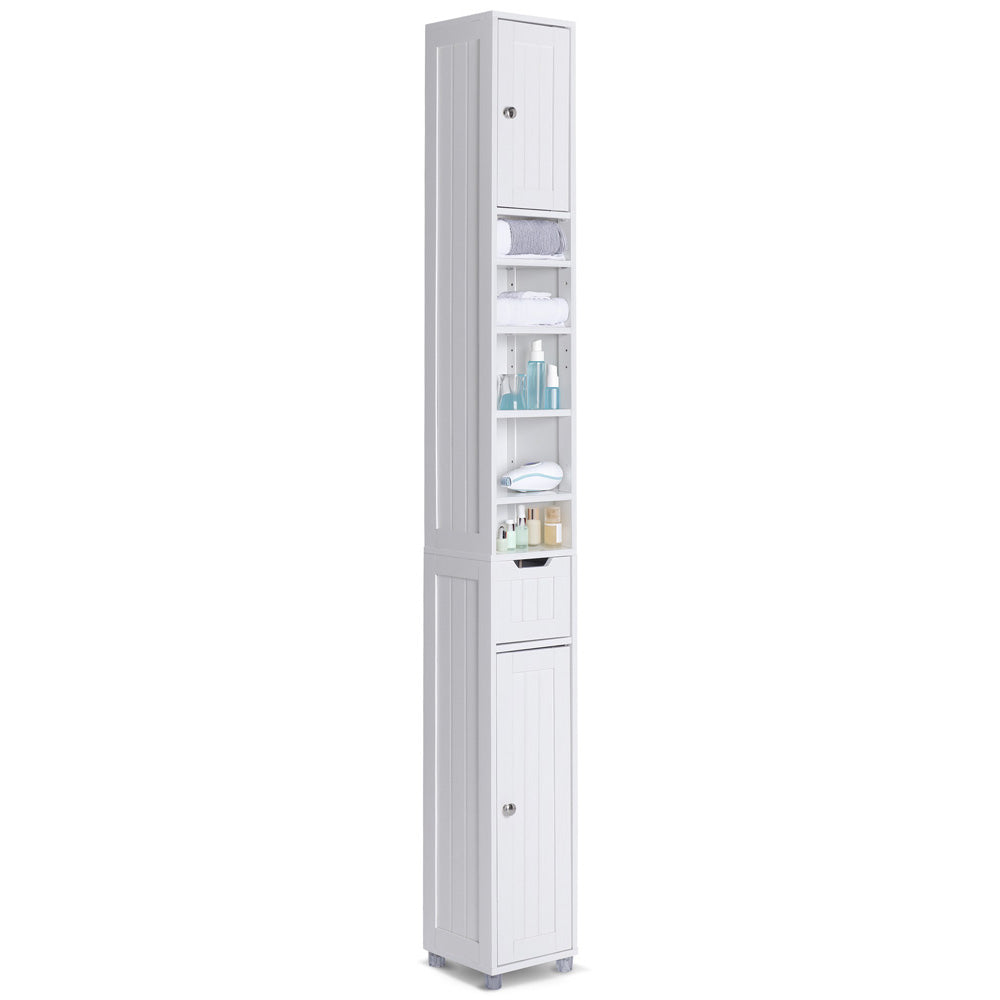 Ce meuble de rangement salle de bain est idéal pour maximiser l'espace vertical dans les petites salles de bain. Il permet de garder vos articles de toilette et autres accessoires bien ordonnés et facilement accessibles. Son design épuré et moderne rehausse l'esthétique de votre salle de bain, tout en offrant une construction durable pour une utilisation à long terme.