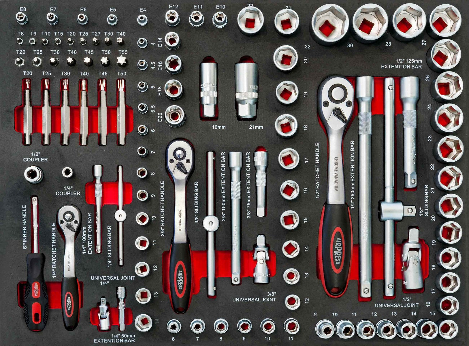 • 🛠️ Sélection Complète d'Outils : Une gamme diversifiée d'outils de haute qualité, organisés dans des inserts en mousse modulaires, idéale pour de nombreuses tâches de réparation et d'entretien.