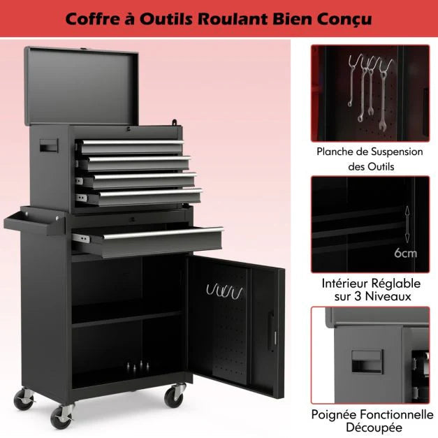 • 🔧 Organisation & Accessibilité : Plusieurs tiroirs et compartiments pour organiser et accéder facilement à vos outils.