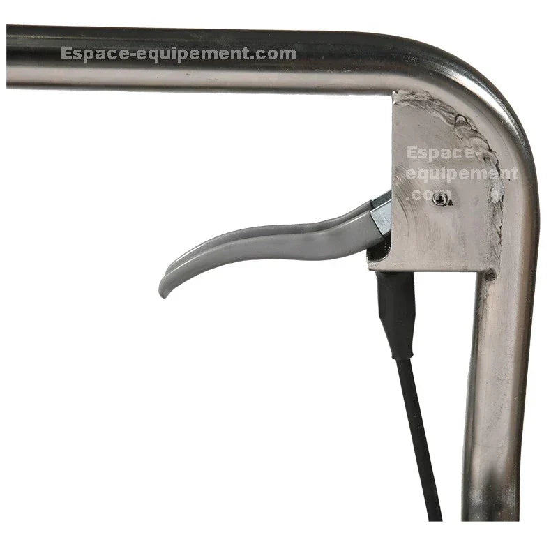 • Roues : 2 roues arrière pivotantes avec frein (acier et polyuréthane) et 2 roues avant fixes (acier et polyuréthane)